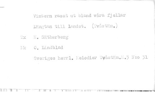 //// Vintern rasat ut bland våra fjellar Längtan till Landet, (rvåstäm.) x H. Sätherberg //// k 0. Lindblad //// Sveriges herrl. Melodier ^.'yåstäm.H.3 N:o 31