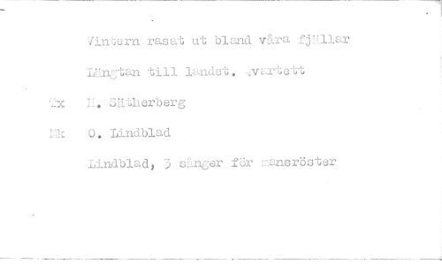 //// /intern rasat ut bland våra fjällar Längtan till landet. ..vartett H. Sätherberg 0. Lindblad //// Lindblad, 3 sånger för nsjisröster