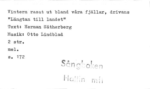 //// Vintern rasat ut bland våra fjällar, drivans "Längtan till landet" //// Text: Herman Sätherberg Husik: Otto Lindblad