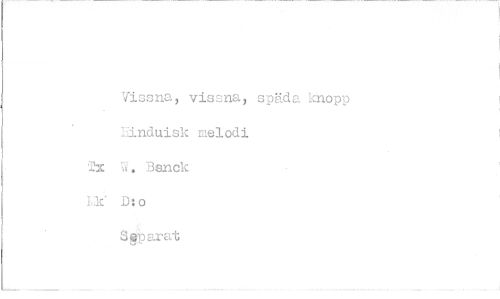 //// Vissna, vissna, späda knopp Hinduisk melodi W. Banck D:o //// Separat