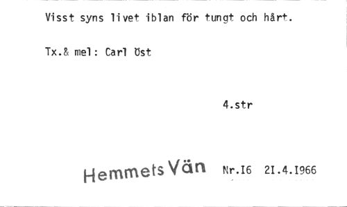 //// Visst syns livet Iblan för tungt och hårt. Tx.& mel: Carl Bst //// 4.str