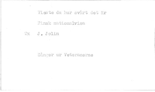 //// Visste du hur svårt det är Finsk nationalvisa Tx J. J olin //// Sånger ur Veteranerne