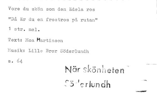 //// Vore du skön som åen ädela ros "Då är du. en frostros på rutan" 1 str. mel. //// Text: Moa Martinson Musik: Lille Bror Söderlundh s. $4 //// o eriunGh