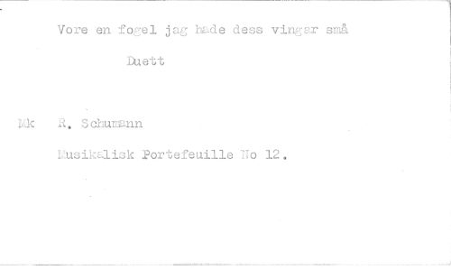 //// Vore en fogel jag hade dess vingar små //// Duett //// R. S chucann //// Musikalisk Fortefeuille Ho 12.