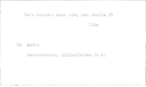 //// Vore Kaspers Lena min, hon skulle få //// Trio //// Nk Loeke //// Westerstrand, Sillsallaten No 2.