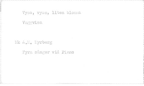 //// Vyss, vyss, liten bloiaMa Vagrfsrisa //// A.H. Hyrberg //// Fyra sånger vid Piano