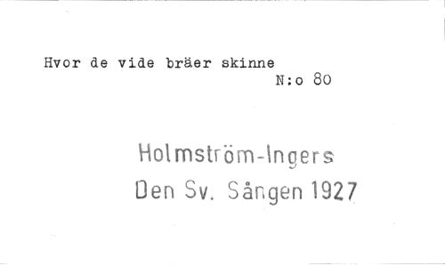 //// Hvor de vide bräer skinne //// N:o 80 //// Holmström-lngers Den Sv. Sången 1927