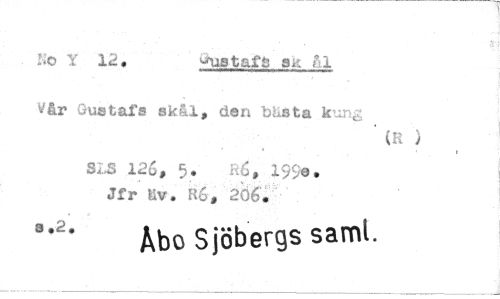 //// iNo Y 12. //// ^istafs 3R ål //// v&r Gustafs skål, den bästa kung //// 126, 5. R6, 195e. //// Jfr Kv. R6, 206J //// Åbo Sjöbergs samt