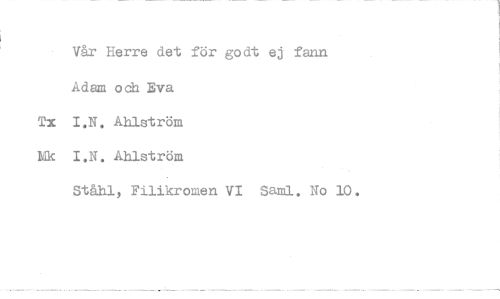 //// Vår Herre det för godt ej fann Adam och Eva Tx I.N. Ahlström Mk I.N. Ahlström //// Ståhl, Filikromen VI Sami. No 10.