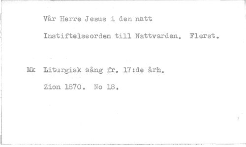 //// V&r Herre Jesus i den natt Instiftelseorden till Nattvarden. //// Liturgisk sång fr. 17:de årh. //// Zion 1870. No 18. //// Flerst.