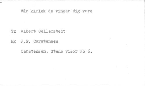 //// Vår kärlek de vingar dig vare //// Tx Albert Gellerstedt Mk J.P, Carstensen //// Carstensen, Stens visor No 6.