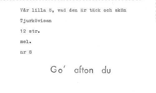 //// Vår lilla ö, vad den är täck och skön Tjurkövisan 12 str. mel. nr 8 //// (3 o' cfton (ju