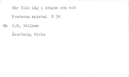 //// Vår Ulla låg i sängen och sof Fredmans epistel H 36 Mk C.M. Bellman Åkerberg, Fyris