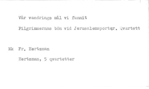 //// Vår vandrings mål vi funnit //// Pilgrimmernas bön vid Jerusalemsportar, Qvartett //// Fr. Hertzman Hertzman, 5 qvartetter