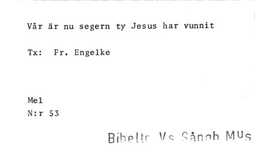 //// Vår är nu segern ty Jesus har vunnit Tx: Fr. Engelke //// Mel //// N:r 53 //// Bihpttr ^finh