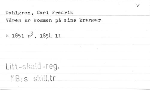 //// V //// Dahlgren, Carl Fredrik //// Våren är kommen på sina kransar //// E 1851 p3, 185^ n //// LiH-skatd-reg. //// !'8:s skiH.tr