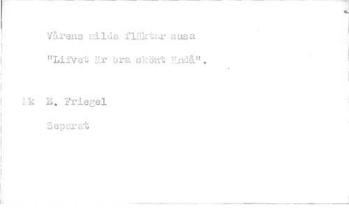 //// Vårens milda fläkt &r susa //// "Lifvet är bra skönt ändå". //// I.k E. Friegel Sepsrat