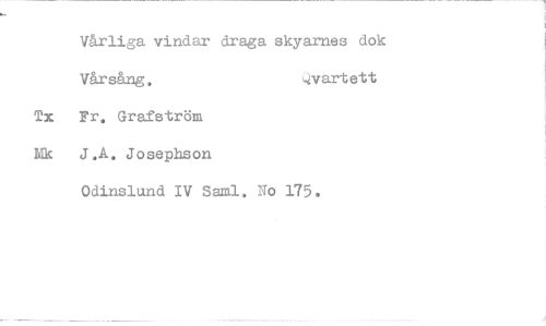 //// Vårliga vindar draga skyames dok //// Vårsång, Qvartett //// Tx Fr, Grafström Mk J.A. Josephson //// Odinslund IV Sami, No 175.