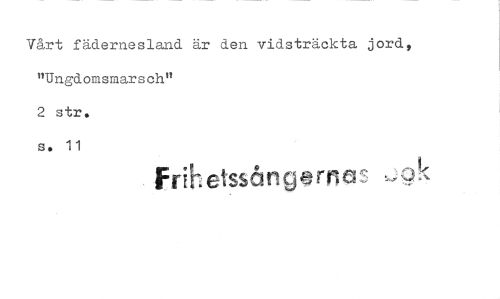 //// Vårt fädernesland är den vidsträckta jord, "Ungdomsmarsch" //// 2 str. s. 11 //// Frihetssångernas -9