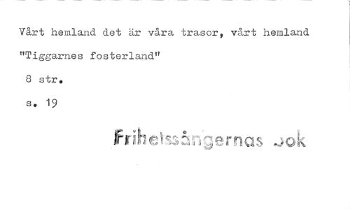 //// Vårt hemland det är våra trasor, vårt hemland "Tiggarnes fosterland" //// 8 str. s. 19 //// jFyibehsångernas jok
