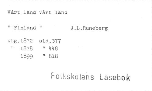 //// Vårt land vårt land //// " Finland " //// utg.1872 sid.377 " 1878 " 448 1899 " 818 //// .L.Runeberg //// Folkskolans Läsebok