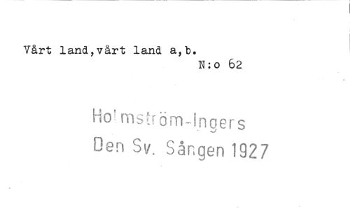 //// Vårt land,vårt land a,b. //// N:o 62 //// Ho'msträm-lnoers Dert Sv. Sången 1927