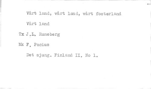 //// Vårt land, vårt land, vårt fosterland Vårt land TxJ.L. Runeberg Mk F. Pacius //// Det sjung. Finland II, No 1.