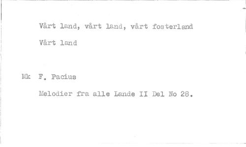 //// Vårt land, vårt land, vårt fosterland //// Vårt land //// F. Pacius //// Melodier fra alle Lande II Del No 28.