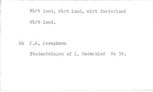 //// Vårt land, vårt land, vårt fosterland //// Vårt land. //// J.A. Josephson //// Studentsången af I. Hedenblad No 38.