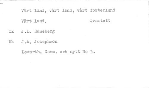//// Vårt land, vårt land, vårt //// Vårt land. //// J.L. Runeberg //// J.A. Josephson //// Lewerth, Gamm. och nytt No //// fosterland Qvartett