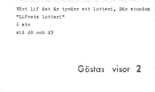 //// V&rt lif det är tyvärr ett lotteri, Där stundom "Lifvets lotteri" //// 6 str //// sid 48 ooh 49