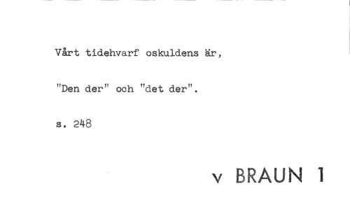 //// Vårt tidehvarf oskuldens är, "Den der" och "det der", s. 248 //// v BRAUN 1