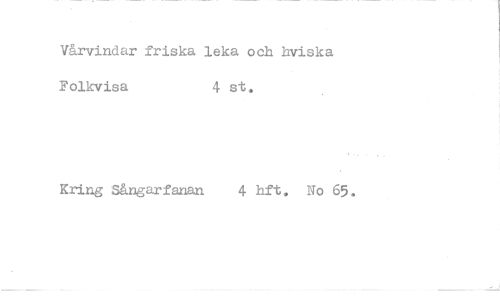 //// Vårvindar friska leka och hviska //// Folkvisa 4 st. //// Kring Sång arfanan 4 hft, //// No 65.