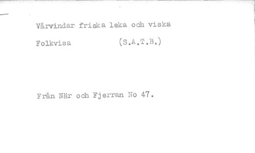 //// Vårvindar friska leka och viska Folkvisa (S.A.T.B.) //// Från När och Fjerran No 47.
