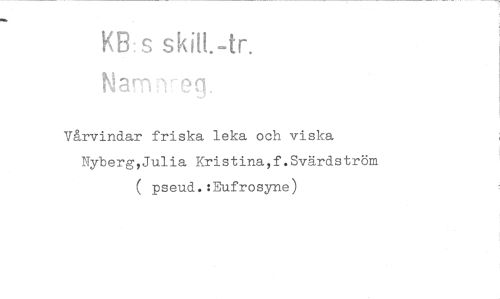 //// KB:s skiH.-tr. //// i eq. //// Vårvindar friska leka och viska //// Nyberg,Julia Kristina,f.Svärdström ( pseud.:Eufrosyne)