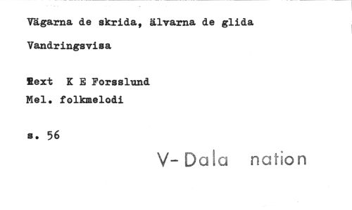 //// Vägarna de skrida, älvarna de glida Vandringsvi s a //// Bext K E Fors s lund Mel. folkmelodi //// 56 //// V- Data nation