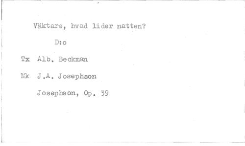 //// Väktare, hvad lider natten? D:o //// Tx Alb. Beckman Mk J.A^ Josephson Josephson, Op. 39