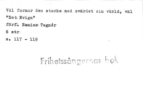 //// Väl formar den starke med svärdet sin värld, väl "Det, Eviga" förf. Esaias Tegnér 6 str //// s. 117 - 119 //// -c'
