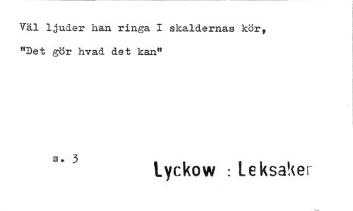 //// Väl ljuder han ringa I skaldernas kör, "Det gör hvad det kan" //// tyckow : Leksaker