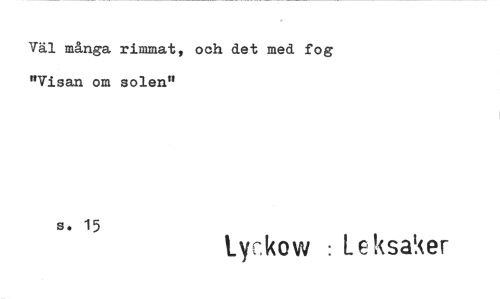 //// Väl många rimmat, och det med fog "Visan om solen" //// Lyrkow : Leksaker