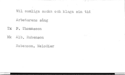 //// Väl somliga sucka och klaga sin tid Arbetarens sång Tx P, Thomasson Mk Alb. Rubenson //// Rubenson, Melodier
