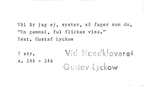 //// Väl är jag ej, syster, så fager som du, "En gammal, ful flickas visa." //// Text. Gustaf Lyckow