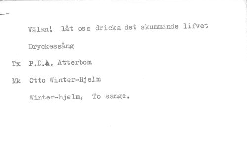 //// Välant låt oss dricka det skummande lifvet Dryckessång Tx P.D.4. Atterbom Mk Otto Winter-Hjelm //// Winter-hjelm, To sange.