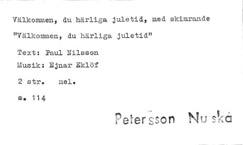 //// Välkommen, du härliga juletid, med skimrande //// "Välkommen, du härliga juletid" //// Text: Paul Nilsson Musik: Ejnar Eklöf //// 2 str. mel. //// s. 114
