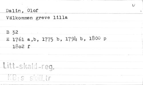 //// Dalin. Olof___ //// Välkommen greve lilla //// B 32 //// E 1761 a,b, 1775 b* 1794 b, //// l8o2 f