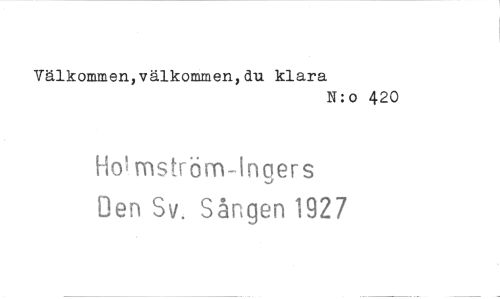 //// Välkommen,välkommen,du klara //// N:o 420 //// Ho' mstrom-tngers Den Sv. Sången 1927