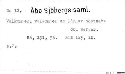 //// No 12. Abo Sjöbergs samt. //// VRlkocaren, välktxn, en en ifba^er höstnatt //// öb. \Refvar. //// aé^ 191, 36. s^..s 125, le. //// a.2. //// Till I ITT TT