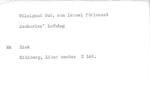 //// Välsignad Gud, som Israel förlossat Zacharias' lofsång //// Zink //// Kihlberg, Liber cantus H 148.