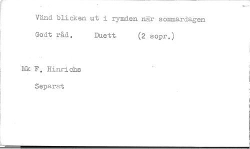 //// Vänd blicken ut i rymden när sommardagen Godt råd, Duett (2 sopr.) //// Mk F. Hinrichs Separat
