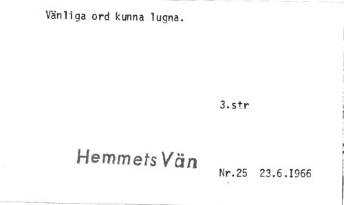 //// Vänliga ord kunna lugna. //// 3.str //// Hemmet Von //// Nr.25 23.6.1966